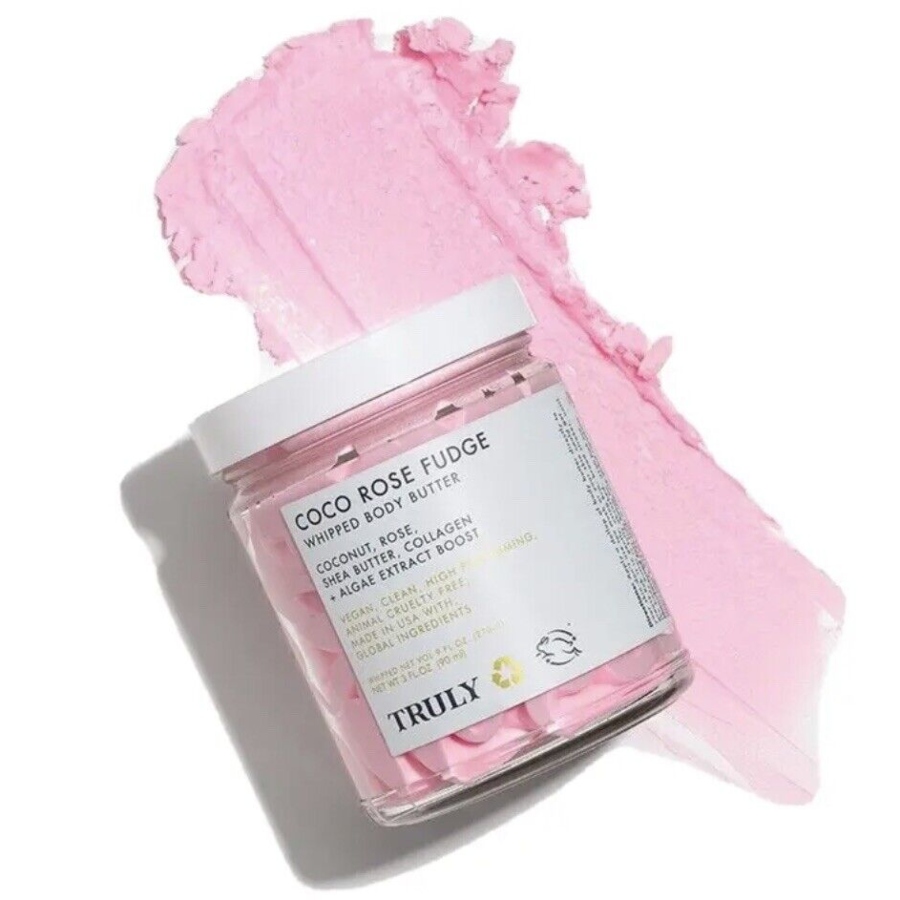 Truly Whipped Body Butter: «Βούτυρο σώματος» με τριαντάφυλλο, βούτυρο καριτέ και κακάο στη σύνθεση του που ενυδατώνουν και θρέφουν το δέρμα αφήνοντας ένα τέλειο και αναζωογονητικό άρωμα. Τα εκχυλίσματα φυκιών με αντιοξειδωτικά και μέταλλα που επίσης περιέχει ενισχύουν τον δερματικό φραγμό.