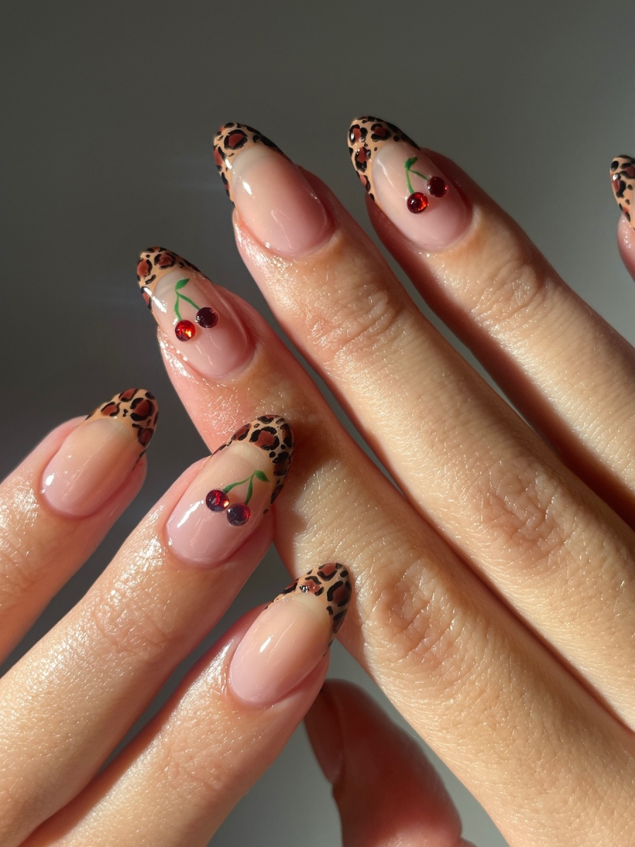 Animal print tips με 3D μικροσκοπικά κεράσια.