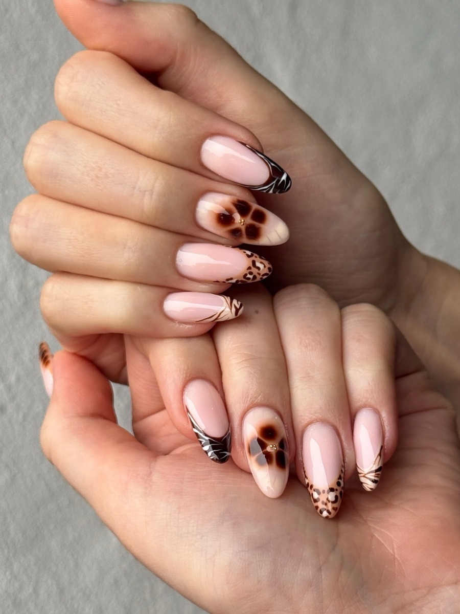 Nude βάση και abstract leopard εφέ.