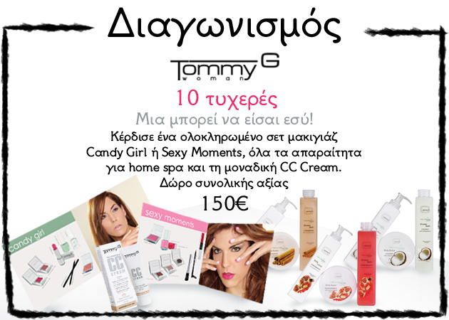 Ο διαγωνισμός της Tommy G έφτασε στο τέλος του! Η συμμετοχή σας ήταν πολύ μεγάλη και σας ευχαριστούμε γι’ αυτό! Και σήμερα, θα φτιάξουμε την μέρα σε 10 κορίτσια καθώς θα κερδίσουν από ένα σετ περιποίησης σώματος, μακιγιάζ αλλά και την αγαπημένη μας CC cream, το καθένα συνολικής αξίας €150 (δες εδώ περισσότερες λεπτομέρειες για τα δώρα).