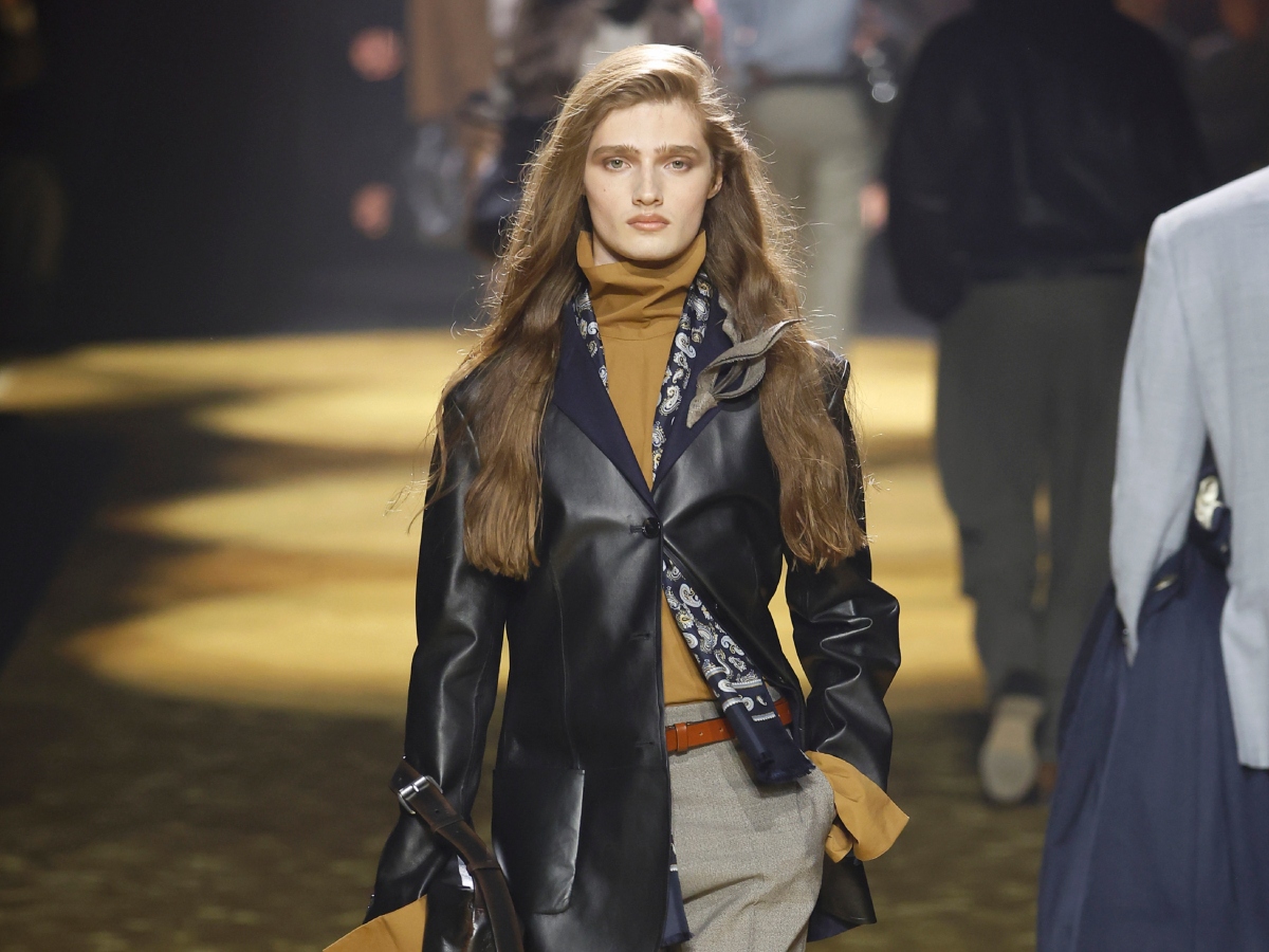 Το μυστικό του look που είδαμε στο show του οίκου Boss δεν είναι η ένταση, αλλά η συνοχή. Όλα κινούνται στην ίδια ζεστή παλέτα, με μικρές διαβαθμίσεις που προσαρμόζονται στον κάθε τόνο.