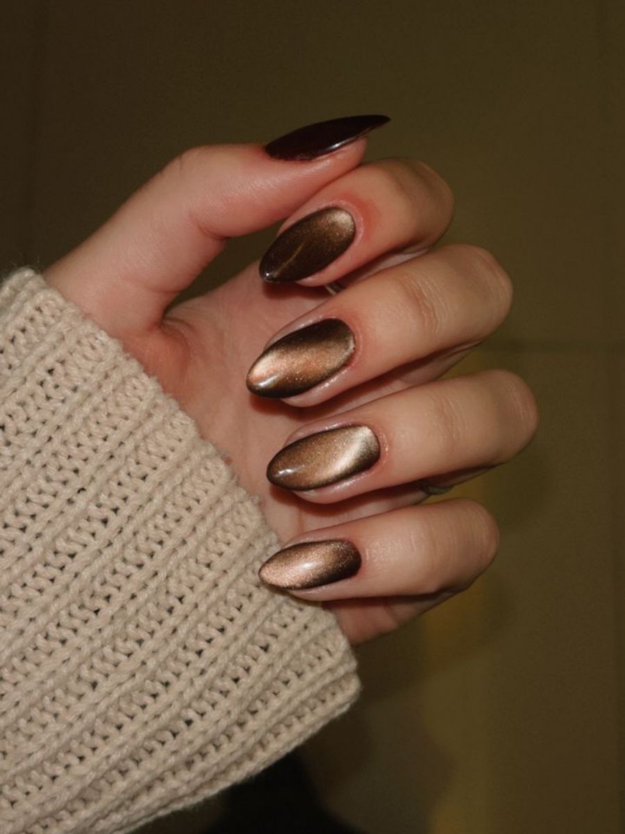 Τα cat-eye νύχια κάνουν δυναμική επιστροφή στα trends, χάρη στο νέο «cinnamon glaze» μανικιούρ της Hailey Bieber.