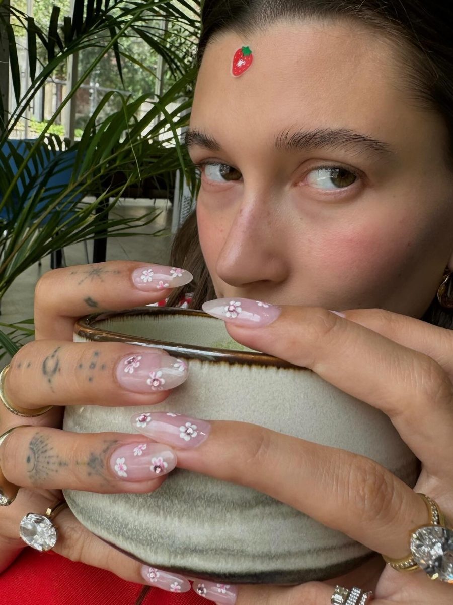 Παράλληλα συνεχίζει τις αγαπημένες της beauty συνήθειες τονίζοντας τα ζυγωματικά της με τέλειες ροζ αποχρώσεις ενώ υιοθετεί τέλεια μανικιούρ που γίνονται trend μέσα σε λίγες ώρες. Και τώρα έρχεται με ένα ανοιξιάτικο και ρομαντικό μανικιούρ που λέγεται ότι μαρτυρά το φύλο του μωρού της. Η βάση είναι ροζ και διακριτική και την έχει στολίσει με άνθη κερασιάς και μικροσκοπικά κρύσταλλα.