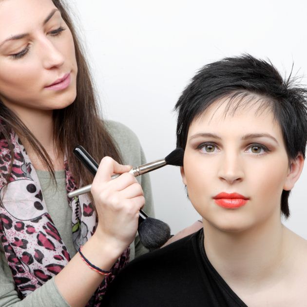Με μια πούδρα δύο- τρεις τόνους πιο σκούρα από αυτή που απλώσαμε στη βάση, δημιουργήσαμε κοψίματα με κάθετη διάθεση. Έπειτα, για περισσότερο χρώμα απλώσαμε πάνω από το ίδιο σημείο ρουζ σε βερικοκί απόχρωση με φορά από τα μήλα και προς τους κροτάφους, κάνοντας σβησίματα όσο προχωρούσαμε προς το περίγραμμα του προσώπου.