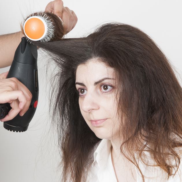 Συνέχισε με ένα ψαλίδι από την ρίζα μέχρι τις άκρες κι έπειτα με τα χέρια άνοιξε τις μπούκλες για να δώσει πιο αέρινο αποτέλεσμα.