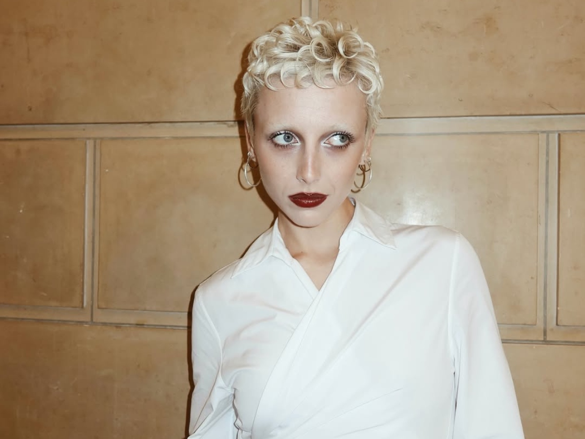 Στο show του οίκου Mugler o hairstylist Sami Knight πρόσθεσε δύο devil horns στο ξανθό pixie της και η makeup artist Lilly Keys, με τη σειρά της δημιούργησε ένα ασύλληπτο smoky eye με γκρι, κρεμώδη σκιά και μαύρο περίγραμμα στο εσωτερικό του κάτω βλεφάρου. Το blush σε κόκκινο χρώμα είναι σχεδόν ενσωματωμένο με το eye make up look .