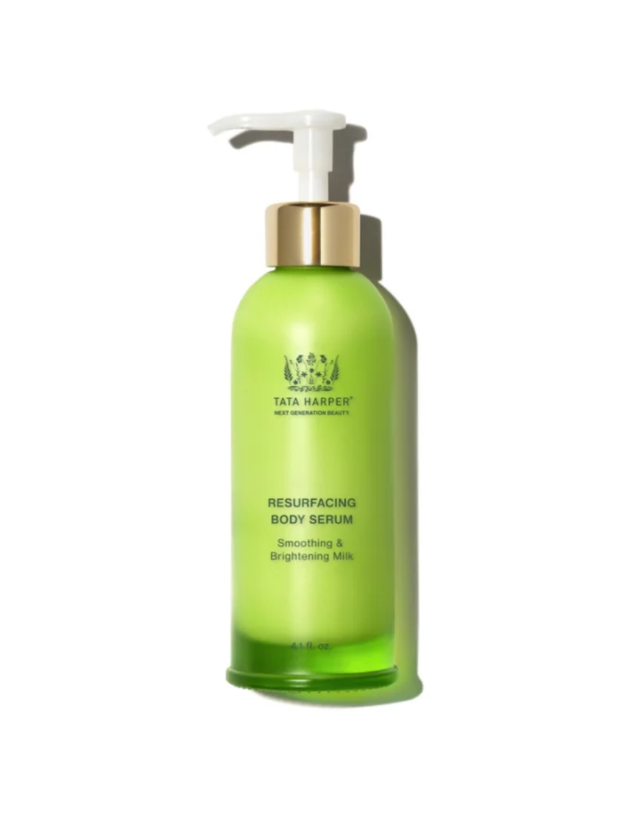 Tata Harper Resurfacing Body Serum: Θεραπεία επιφανειακής αποκατάστασης ολόκληρου του σώματος. Ο ορός που απορροφάται γρήγορα φωτίζει, λειαίνει και ενυδατώνει με βιταμίνη C με βάση τα φρούτα, βιταμίνη Α φυτικής προέλευσης, υπερφρούτα AHA και υαλουρονικό οξύ για υγιές δέρμα από την κορυφή μέχρι τα νύχια.