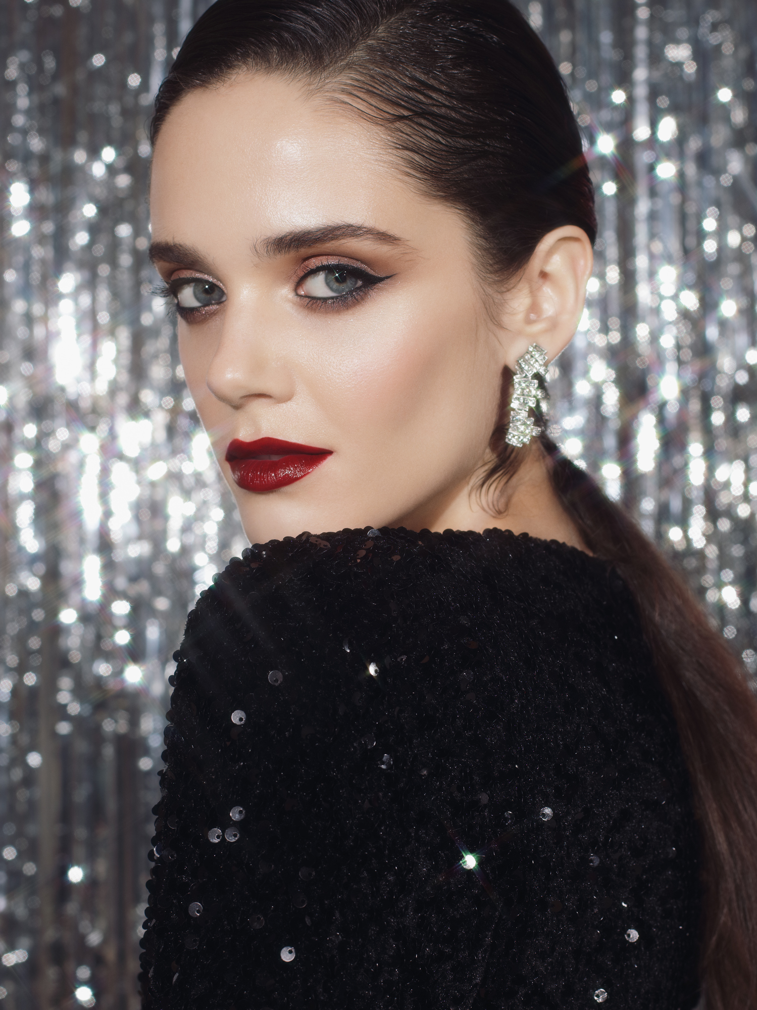 Στα μάτια, οι καθαρές γραμμές είναι το κλειδί. Nude σκιές, απαλό καφέ smokey ή απλώς καλοδουλεμένη μάσκαρα κρατούν το βλέμμα ισορροπημένο. Αν επιλέξεις eyeliner, προτίμησε λεπτή γραμμή για διακριτική ένταση. Τα έντονα glitter στα μάτια καλό είναι να αποφεύγονται, ώστε να μη “συγκρούονται” με τη λάμψη των χειλιών.