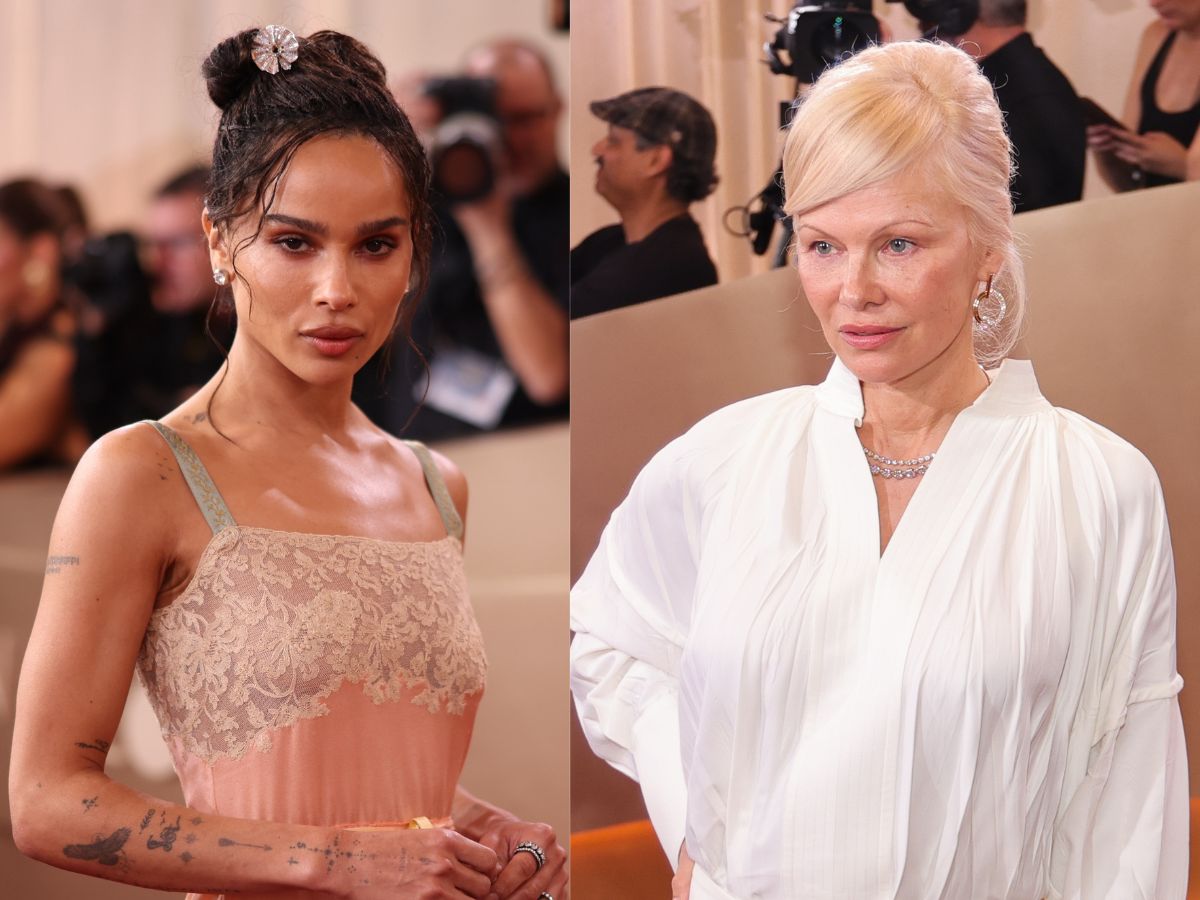 Η Rei Ami συνδύασε τις χαρακτηριστικές ίσιες αφέλειές της με ένα ελαφρώς πιο επιμελημένο look, που οριζόταν από δύο λεπτές, αέρινες τούφες οι οποίες του έδιναν μια διακριτικά edgy διάθεση. Δεν μπορούμε όμως να μη σχολιάσουμε και το ιδιαίτερο, sculptured updo της Zoe Kravitz. Τα μαλλιά της είχαν ένα wet φινίρισμα και ήταν πιασμένα σε σχήμα φιόγκου στολισμένα με ένα ασημί αξεσουάρ μαλλιών.
