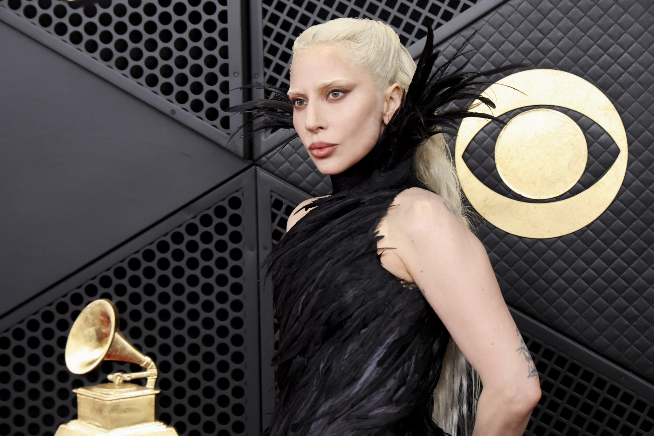 H Lady Gaga ξεχωρίζει πάντα με τις dramatic εμφανίσεις της. Στη χθεσινή λαμπερή βραδιά, η βραβευμένη superstar εμφανίστηκε με τα πλατινέ μαλλιά της χωρισμένα στη μέση και πιασμένα σε ένα half-up, και ήταν απόλυτα εναρμονισμένα με τα αποχρωματισμένα φρύδια της, ενισχύοντας τη γλυπτική αντίθεση του contouring της. Στα μάτια και τα χείλη κινήθηκε σε ζεστούς nude τόνους, με μια διακριτική καφέ γραμμή στις πάνω βλεφαρίδες για ορισμό. Και τι άλλο θα ταίριαζε με ένα μαύρο φόρεμα με φτερά αν όχι ένα κλασικό μαύρο μανικιούρ;