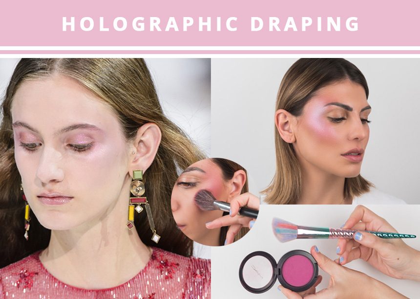 Στο φετινό show του ο οίκος Valentino μας έδειξε ένα εντελώς διαφορετικό μακιγιάζ: γενναίες δόσεις ρουζ τοποθετημένες ψηλά στα ζυγωματικά. Η τεχνική τοποθέτησης λέγεται draping, έρχεται από τα 90’s αλλά λόγω της λάμψης που προστέθηκε στο show έγινε πιο updated, fresh και σύγχρονη.