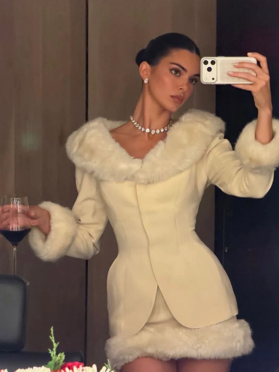 Και αν ήλπιζες να δεις πιο καλά τα νύχια της, που ταίριαζαν απόλυτα με το μονόχρωμο λευκό look, η nail artist Zola Ganzorigt σου δίνει μια γεύση. Στις 30 Δεκεμβρίου, αναδημοσίευσε μερικές από τις φωτογραφίες της Jenner, κάνοντας zoom στη mirror selfie που αναδεικνύει καλύτερα το «shimmering» φινίρισμα των κοντών λευκών νυχιών της. «Custom shimmering ivory για τα Χριστούγεννα», έγραψε στη λεζάντα, αν και η Jenner φαίνεται πως μεταφέρει το μανικιούρ και στο 2026.