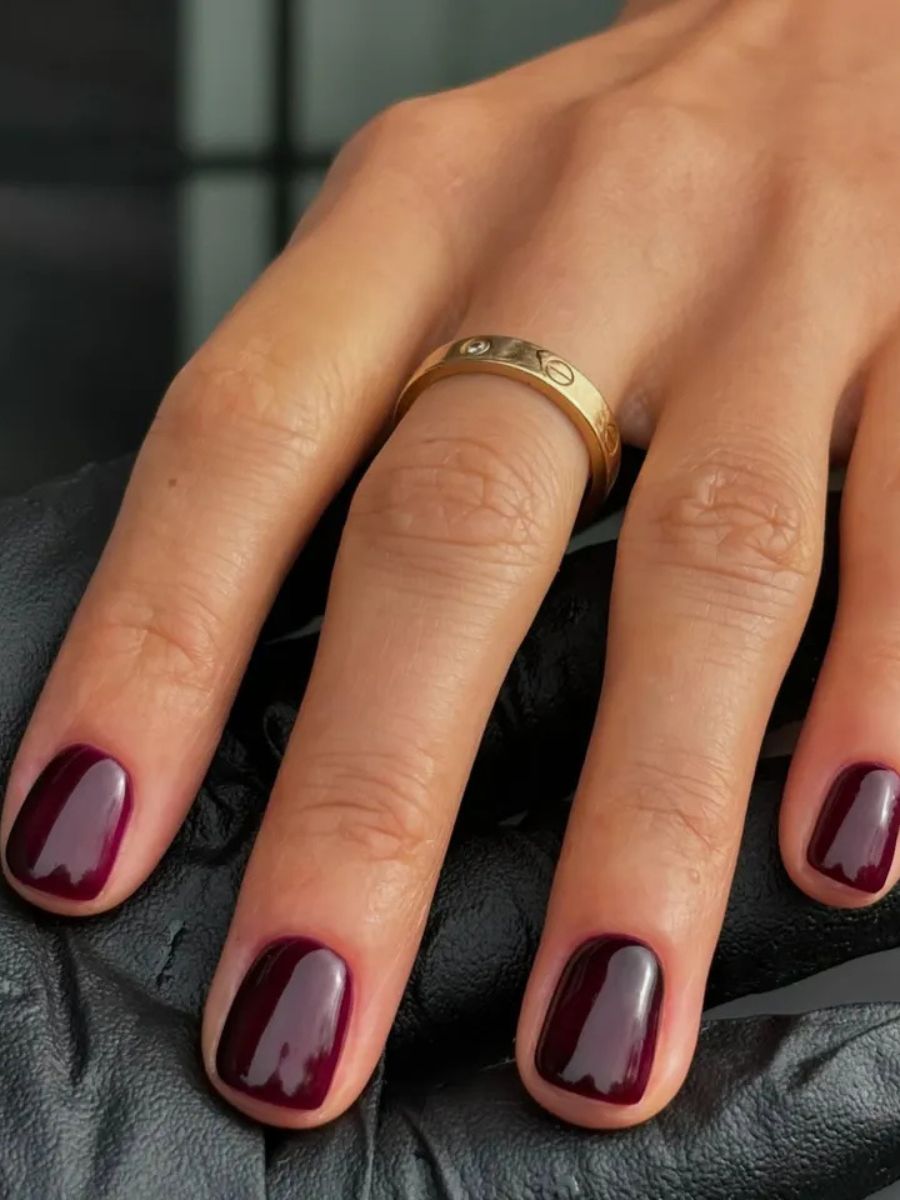 Η πιο διαχρονική επιλογή. Τα κοντά βουργουνδί νύχια αποπνέουν πάντα κομψότητα και πολυτέλεια.