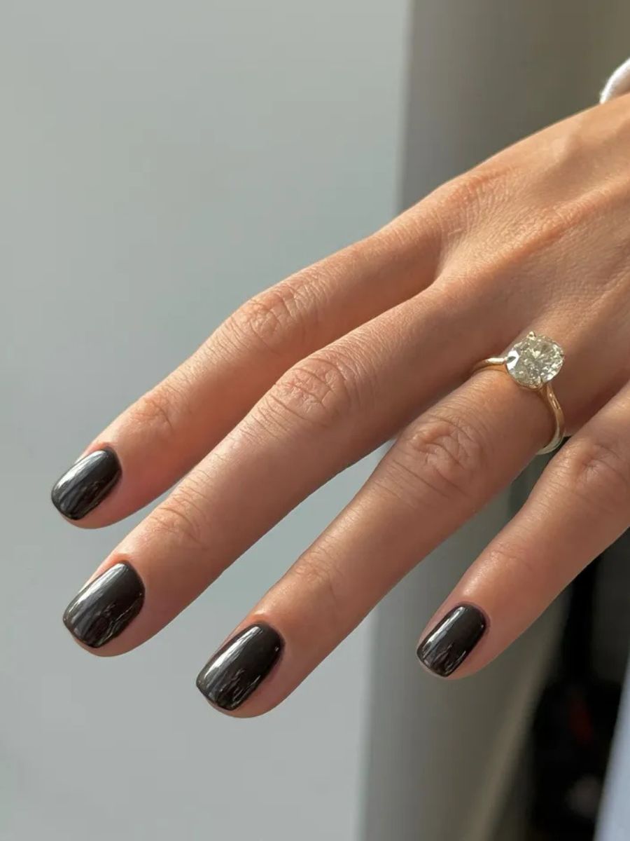 Απόλυτο κλασικό, το γυαλιστερό μαύρο βερνίκι δείχνει πάντα εντυπωσιακό στα κοντά νύχια και αποτελεί μια διαχρονική επιλογή για τον χειμώνα και όχι μόνο.