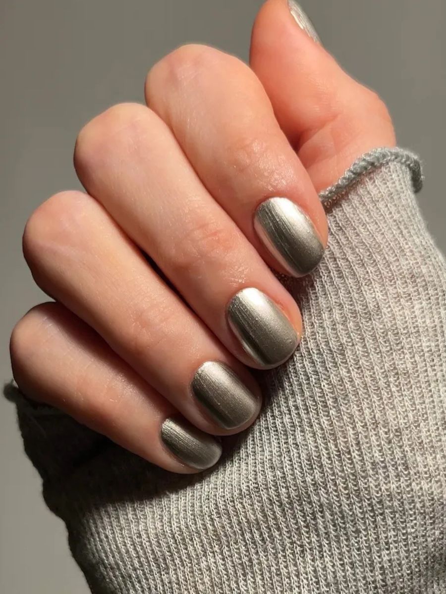 Τέλος, για μια πιο statement εμφάνιση, δοκίμασε μεταλλικό ασημί φινίρισμα. Είναι ο πιο εύκολος τρόπος να αναβαθμίσεις τα κοντά νύχια σου με μια μοντέρνα πινελιά.