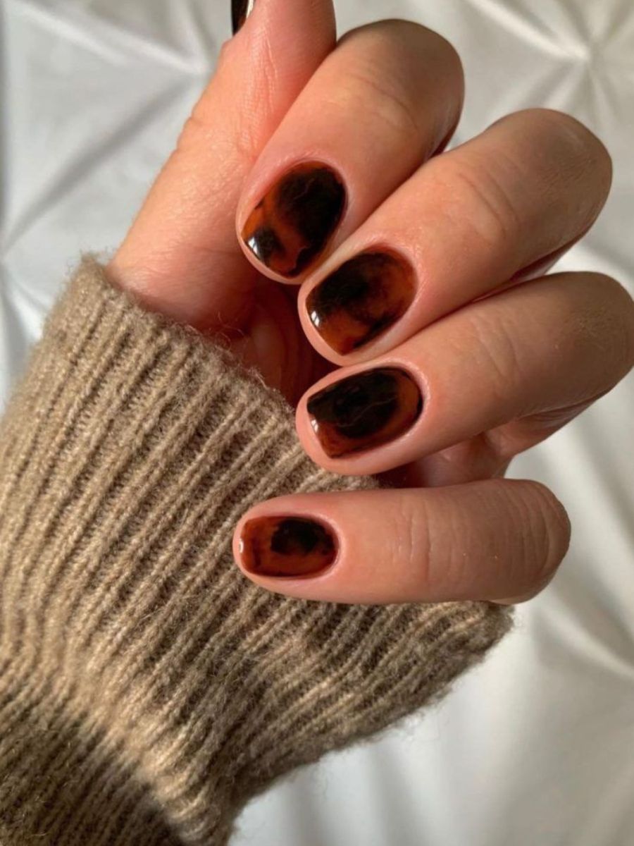 Το σωστό nail art μπορεί να δείχνει απίστευτα κομψό σε κοντό μήκος. Το σχέδιο τύπου “Tortoiseshell” με τις ζεστές, καφέ αποχρώσεις είναι ιδανικό για τη σεζόν.