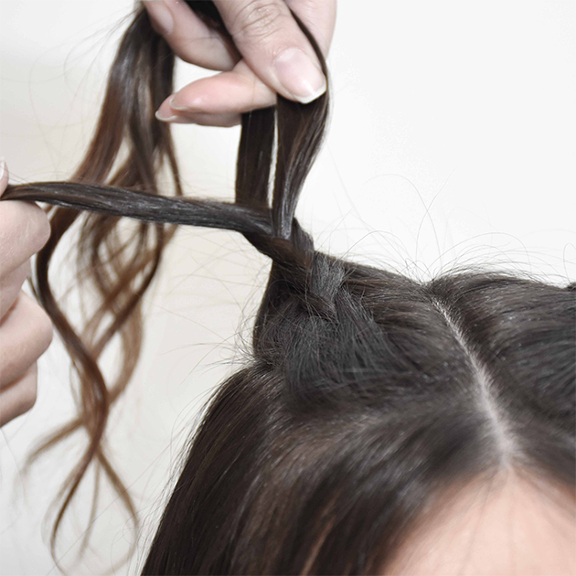 Στερέωσε την άκρη της πλεξίδας με ένα λεπτό λαστιχάκι.