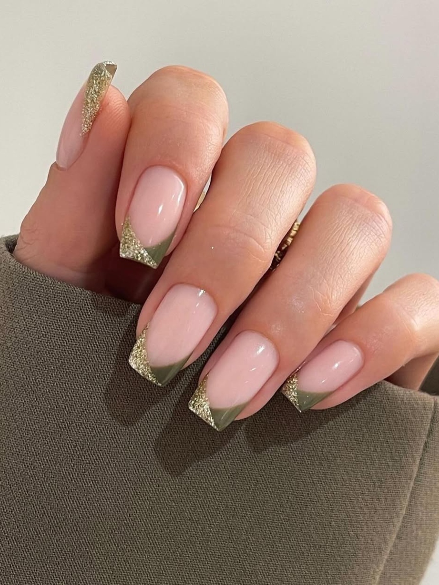Το χρυσό με το olive green δημιουργούν τον πιο σοφιστικέ συνδυασμό για εσένα που επιμένεις να υιοθετείς τα πιο κομψά γιορτινά nail looks.