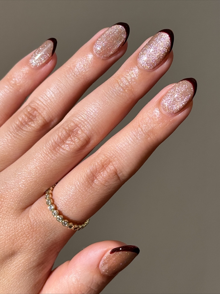 French mani με nude glitter και burgundy tips. O τέλειος συνδυασμός.
