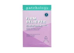 Firm Believer Neck & Décolleté Treatment, Patchology. Το ντεκολτέ σoυ χρειάζεται λίγη φροντίδα; Πες αντίο στο ξηρό, θαμπό δέρμα, τις λεπτές γραμμές και τις ρυτίδες και καλωσόρισε ένα ορατά πιο σφριγηλό, γεμάτο και λαμπερό δέρμα με τη βαθιά θρεπτική μάσκα 5 λεπτών για τον λαιμό και το ντεκολτέ της Patchology. Το καταπραϋντικό δίδυμο με μάσκες υδρογέλης σχεδιάστηκε ειδικά για να προσκολλάται άνετα στο δέρμα ενώ αυξάνει την ικανότητα απορρόφησης των συστατικών όπως τα καταπραϋντικά πεπτίδια χαλκού, η ηρεμιστική και λευκαντική αδενοσίνη καθώς και το μαλακτικό κολλαγόνο.