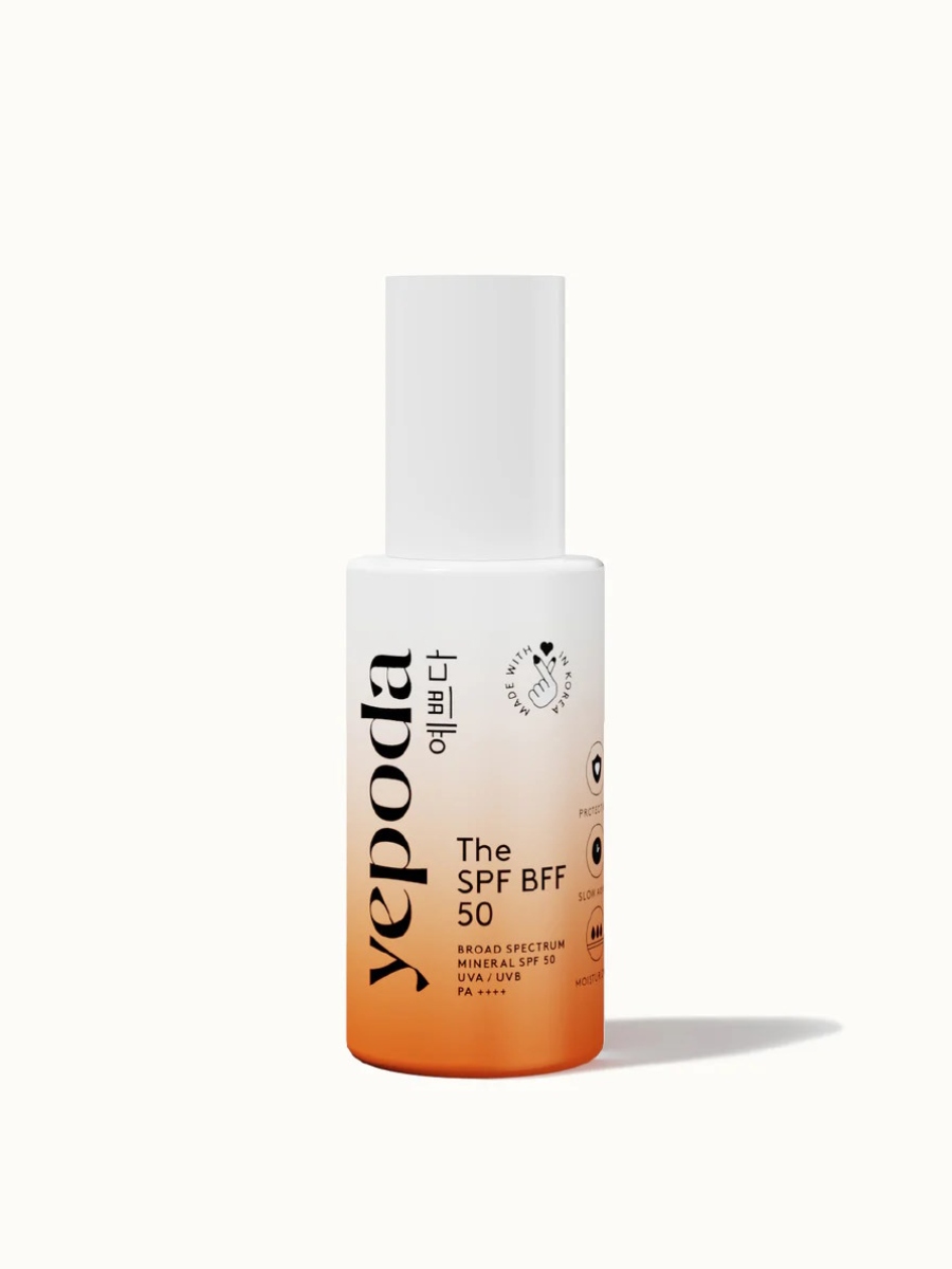 Yepoda The SPF BFF 50: Με υψηλή προστασία SPF 50, ανάλαφρη υφή και φιλική προς το δέρμα σύνθεση, αυτή η αντηλιακή φροντίζει να παραμείνει το πρόσωπό σας ασφαλές, ενυδατωμένο και λαμπερό όλη μέρα. Το διακριτικό της χρώμα χαρίζει φυσική κάλυψη και ομοιόμορφο αποτέλεσμα, σαν ένα ελαφρύ μακιγιάζ που αφήνει το δέρμα να αναπνέει.