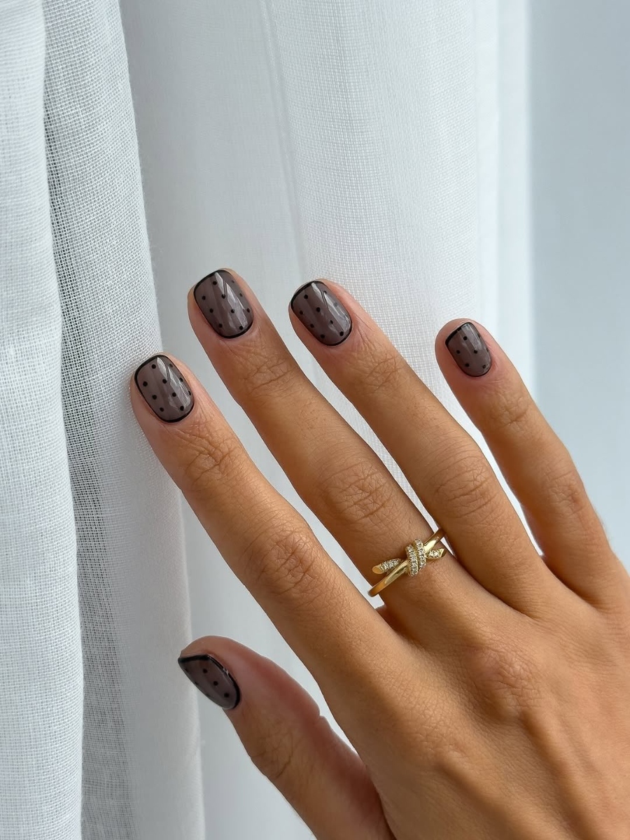 Μπορείς να δοκιμάσεις το διάφανο μαύρο εφέ σε οποιοδήποτε μήκος ή σχήμα νυχιών, αλλά η Barbet λέει ότι το προτιμά περισσότερο σε κοντά “squoval” νύχια (ενδιάμεσο σχήμα μεταξύ τετραγώνου και οβάλ) ή σε μεσαίου μήκους αμυγδαλωτό σχήμα.