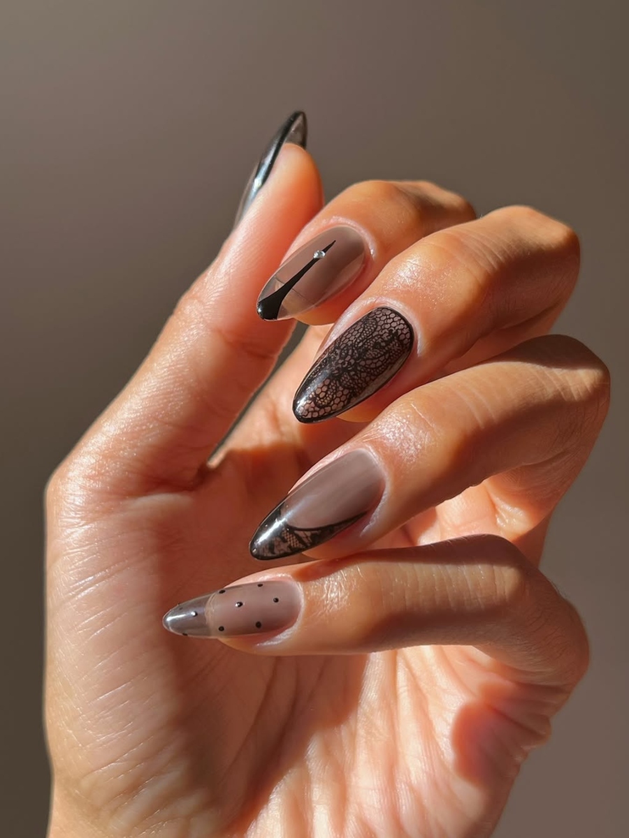 Και ενώ η βασική ιδέα μπορεί να οδηγήσει σε ένα minimal αποτέλεσμα εσύ μπορείς να πειραματιστείς με διάφορα σχέδια και μοτίβα που την αναβαθμίζουν. Σύμφωνα με τις celebrity nail artists η εμφάνιση των διαφανών μαύρων νυχιών είναι ο τέλειος συνδυασμός edgy και effortless. Παίρνει κάτι τόσο τολμηρό όσο το μαύρο και το απαλύνει με ένα διάφανο φινίρισμα, σαν ένα πέπλο στα νύχια.
