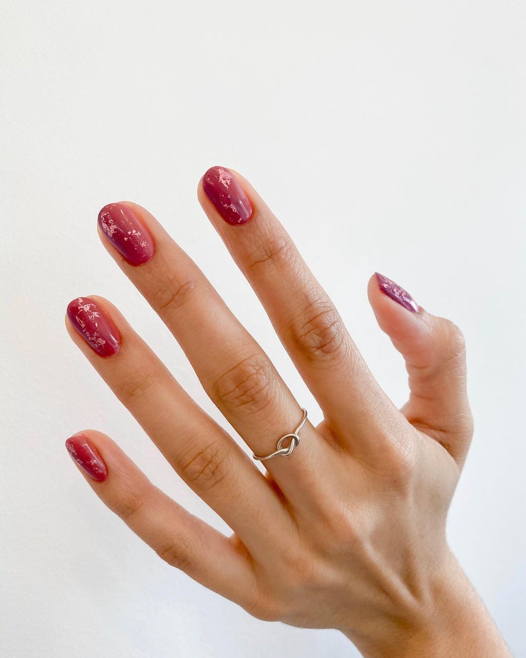 Εκτός από το κόκκινο υπάρχει και το cranberry που είναι και τέλειο και πολύ γιορτινό. Αν δε το συνδυάσεις με την τεχνική foil που θα δημιουργήσει αυτό το ενδιαφέρον ξεθώριασμα, θα έχεις πετύχει το τέλειο μανικιούρ!