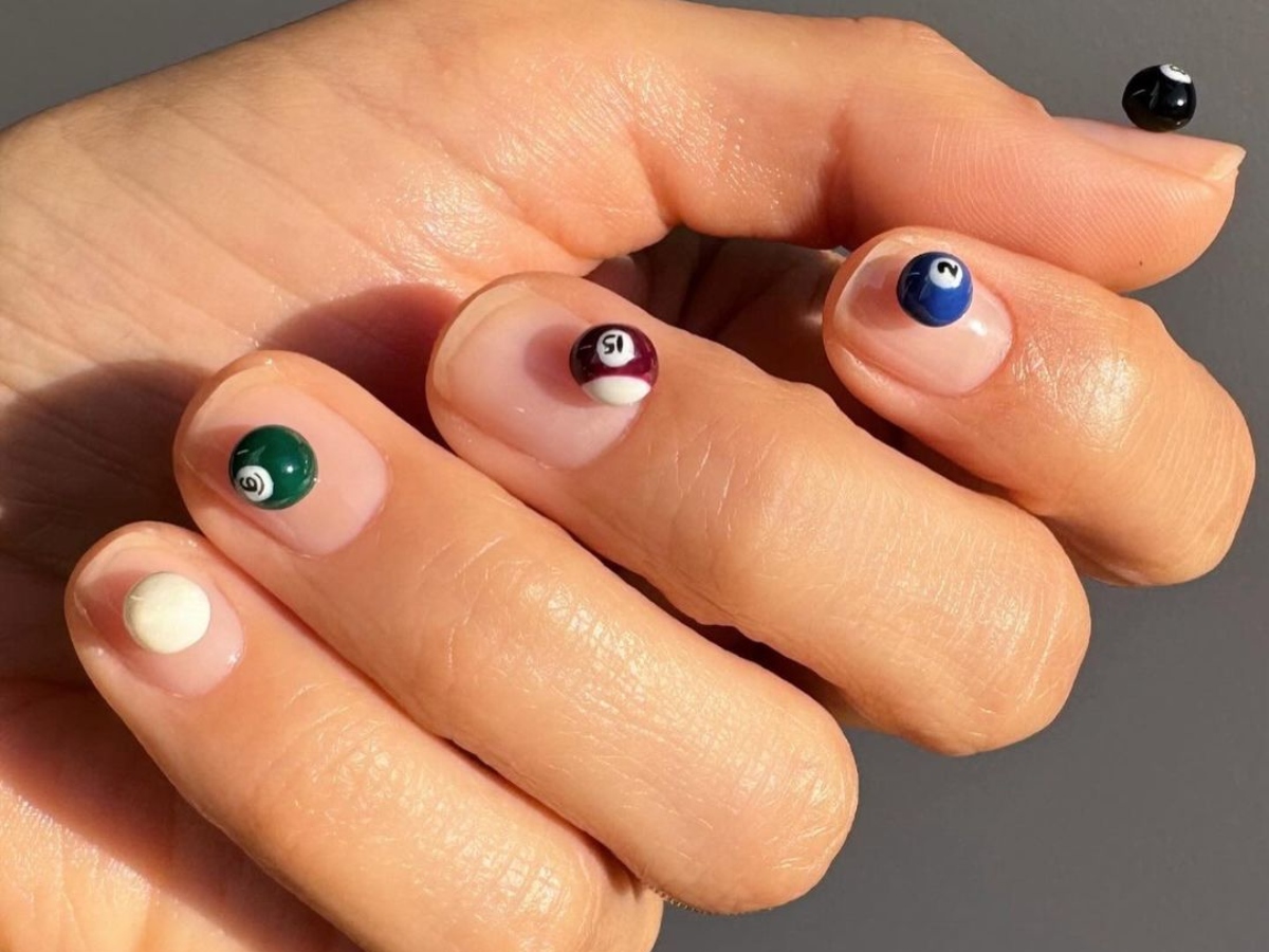 Και τώρα, έρχεται με δύο ακόμη nail art designs, που ακολουθούν την ίδια φιλοσοφία και έχουν ήδη γίνει viral. Το ένα είναι εμπνευσμένο από το μπιλιάρδο μιας και έχει σχηματίσει πάνω στα νύχια της μπάλες με τους χαρακτηριστικούς αριθμούς.