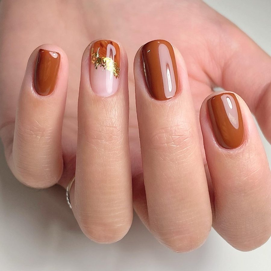 Φύλλα χρυσού και πάλι αλλά σε ένα minimal look κατάλληλο για κοντά νύχια.