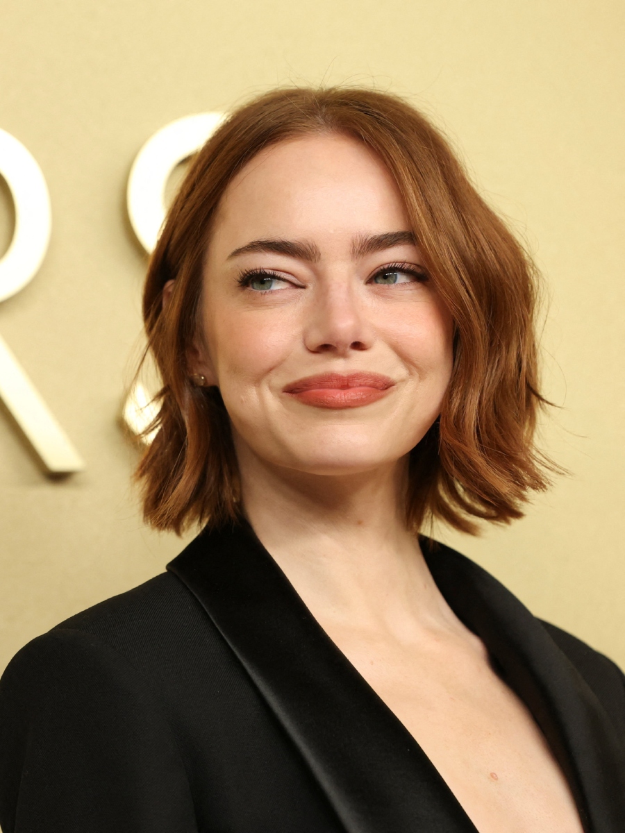 Emma Stone: Έχει ήδη δύο Oscars και φέτος είναι υποψήφια για την ερμηνεία της στην ταινία του Γιώργου Λάνθιμου «Bugonia». Πιστή στο minimal chic, εμφανίστηκε με απαλούς κυματισμούς στο bob της, γήινες αποχρώσεις στα μάτια και ροδακινί σε ζυγωματικά και χείλη.