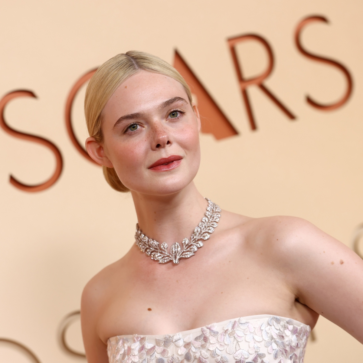 Elle Fanning: Με το καθιερωμένο πλέον στις red carpet εμφανίσεις της princess beauty look. Χαμηλός σινιόν και μακιγιάζ σε παστέλ αποχρώσεις.