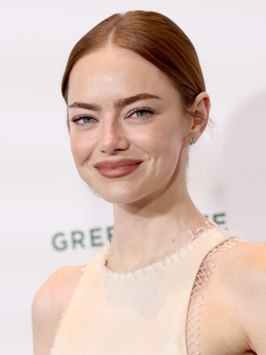 Emma Stone: Με κομψό χαμηλό bun που συνδύασε με τέλειο σκούρο γήινο κραγιόν και soft αποχρώσεις στο βλέμμα.