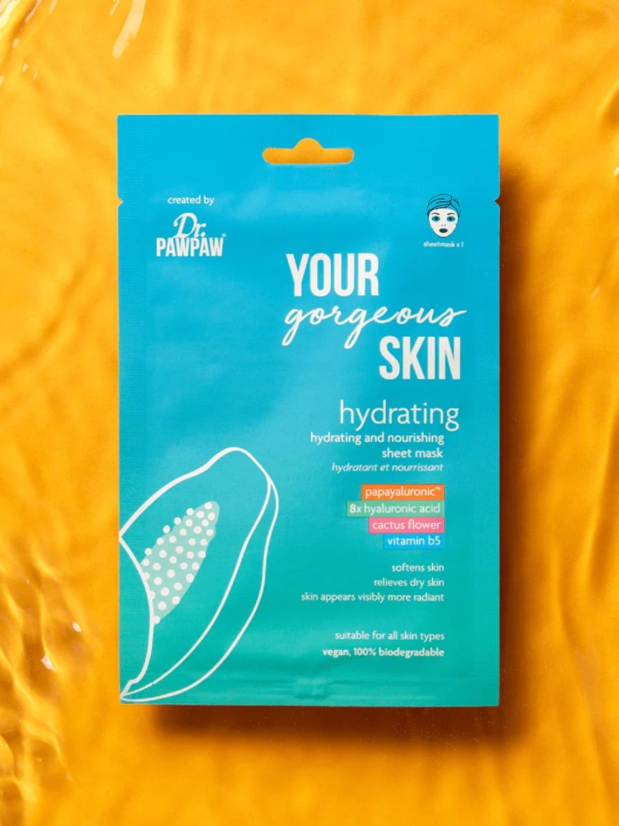 Dr. Pawpaw Your Gorgeous skin Hydrating and Nourishing Sheet Mask: Μάσκα προσώπου για βαθιά ενυδάτωση. Αφήνει το δέρμα απαλό και ορατά πιο λαμπερό.