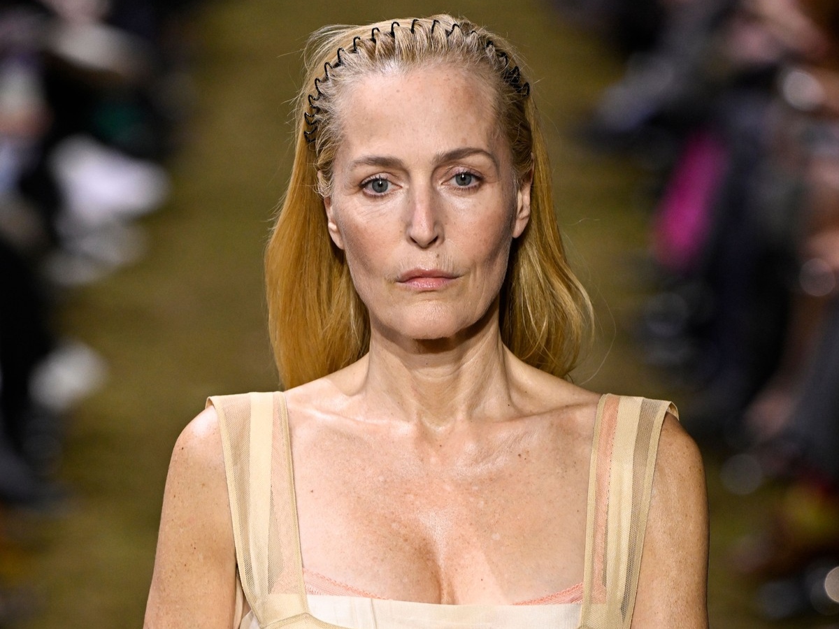 Η ηθοποιός Gillian Anderson, που περπάτησε στο show μεταξύ άλλων iconic μοντέλων όπως η Kristen McMenamy και η Chloë Sevigny, εμφανίστηκε με με comb headband στα μαλλιά με παιχνιδιάρικο, rock‑n‑roll τρόπο, επαναφέροντας αυτήν την τάση στο επίκεντρο των runway looks.