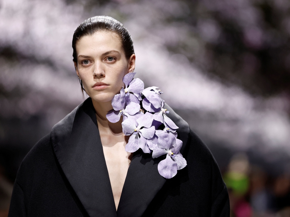 Ο Palau εμπνεύστηκε από τις δημιουργίες που θύμιζαν γλυπτά αλλά και από τους ανθισμένους κήπους της Ιαπωνίας τοποθετώντας μεγάλα μπουκέτα με αληθινά, υπερμεγέθη λουλούδια τόσο στο πλάι όσο και στους ώμους.