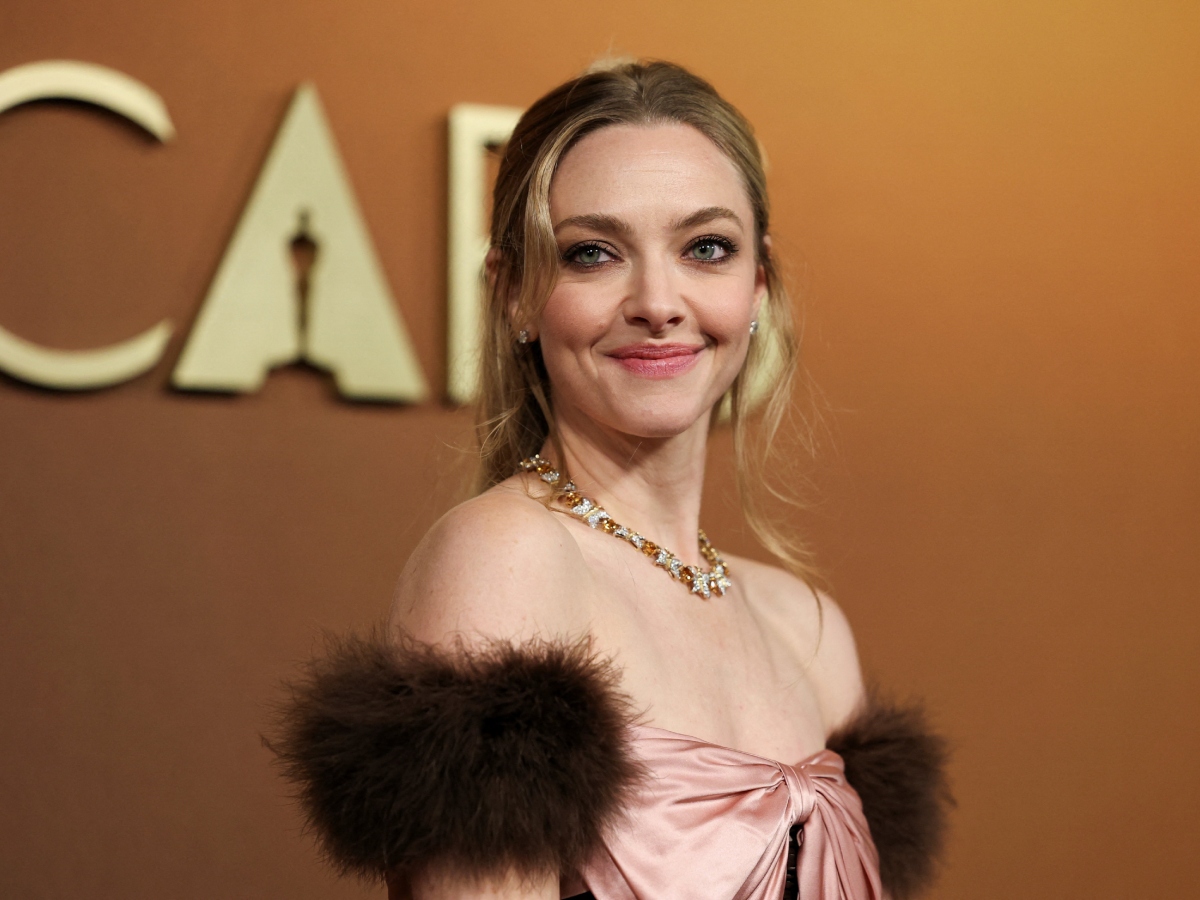 Amanda Seyfried: Καφέ με ροζ και απόλυτα matchy με την τέλεια δημιουργία που φορά.