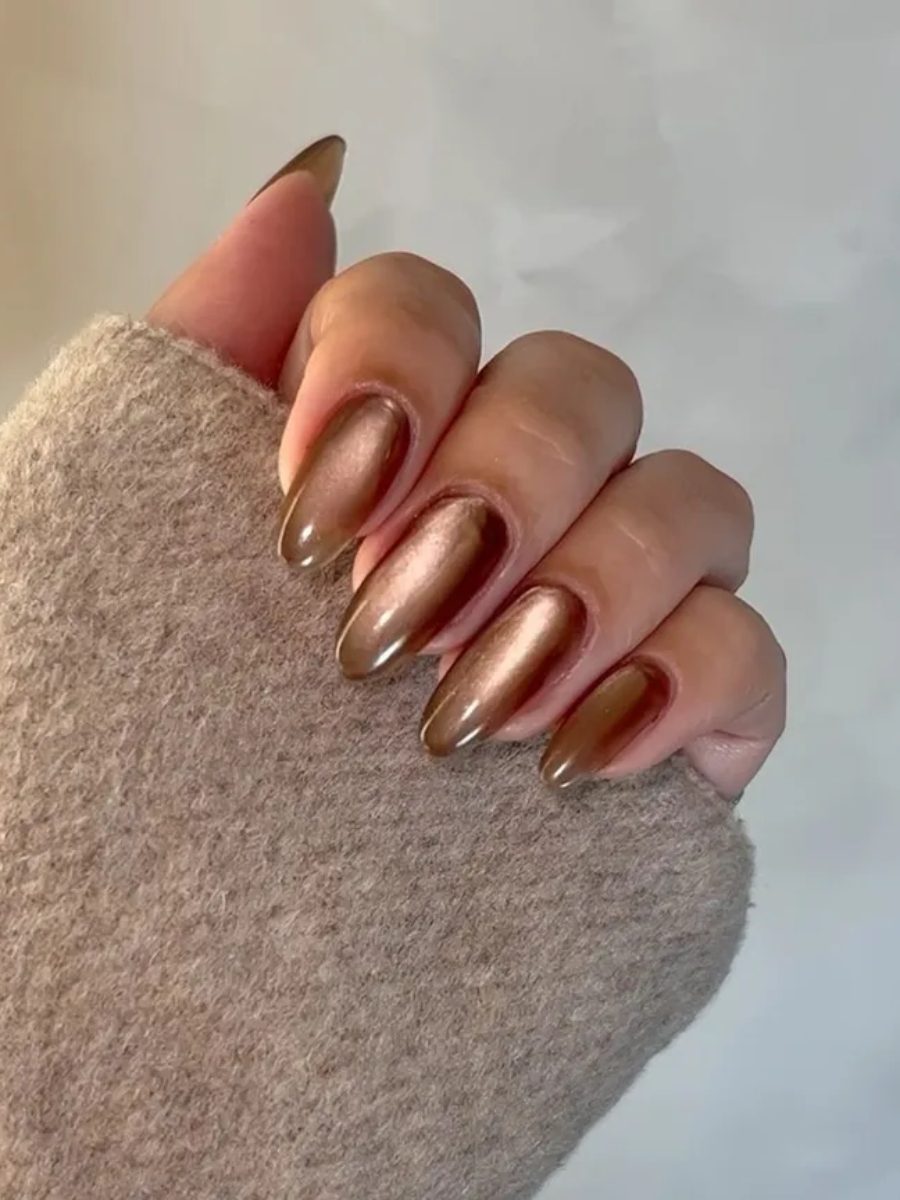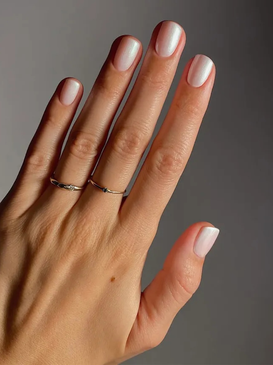 Chrome manicures για κοντά νύχια που αποπνέουν κομψότητα χάρη στην champagne απόχρωσή του.