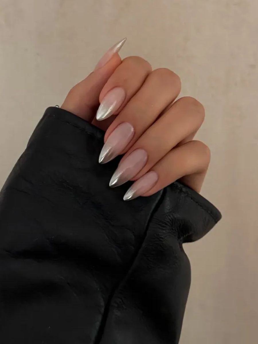 Silver Ombre με διάφανη βάση και ιδανικό για μακριά νύχια.