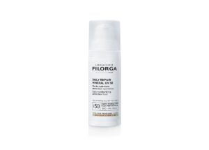 Daily Repair Mineral UV 50, Filorga. Το αντηλιακό πρέπει να έχει πρωταγωνιστική θέση στο νεσεσέρ σε κάθε περίσταση και κάθε σεζόν. Αξίζει να δοκιμάσεις το νέο υγρό Fluid αντηλιακό της Filorga το οποίο παρέχει στην επιδερμίδα αόρατη προστασία με τη μορφή ορυκτού SPF 50, ενυδάτωση, ενισχύει τον δερματικό φραγμό και ταυτόχρονα καταπραΰνει από τον ερεθισμό. Χάρη στην ελαφριά πράσινη υφή του, διορθώνει άμεσα οπτικά την ερυθρότητα. Άρα με ένα μόνο προϊόν έχεις πολλαπλά skincare οφέλη.