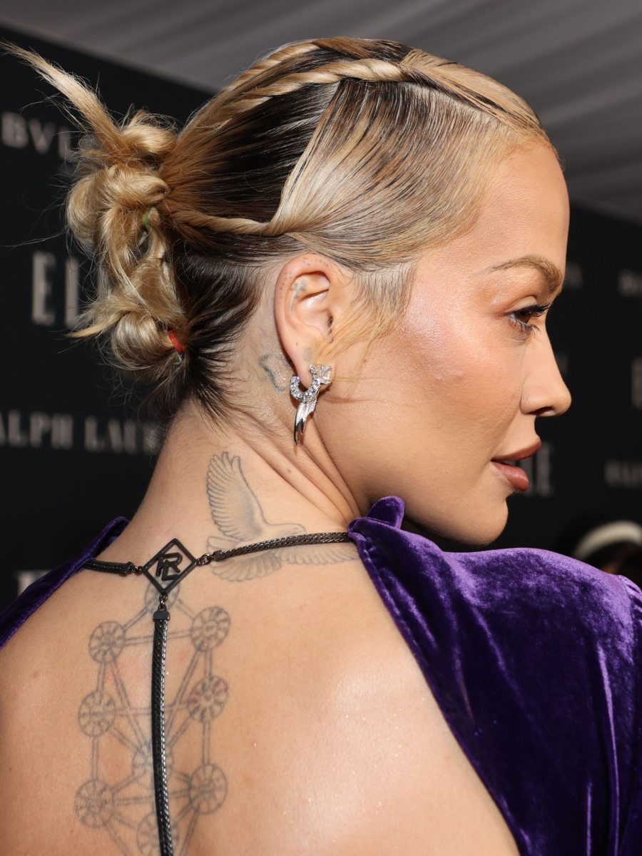 Η Rita Ora ήταν μία από τις καλεσμένες celebrities στο Elle Women In Hollywood 2025 και πραγματοποίησε μία ακόμη εντυπωσιακή εμφάνιση. Η μοβ, βελούδινη δημιουργία άφηνε εκτεθειμένη την πλάτη της και τα τατουάζ της σε κοινή θέα.