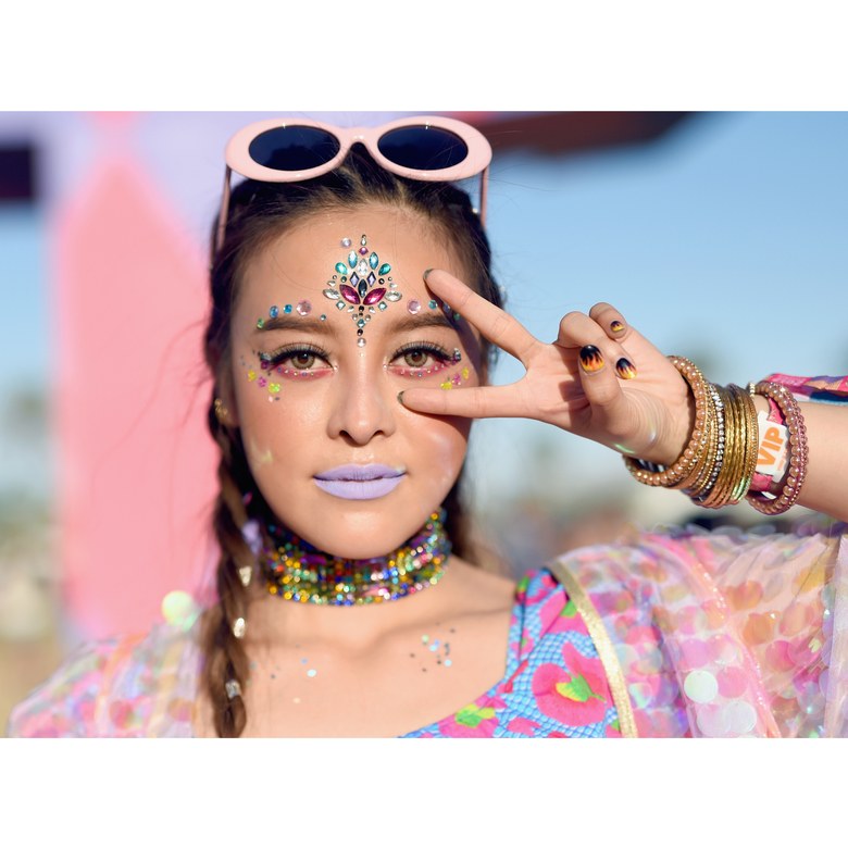 Υπάρχει ένα τρίπτυχο που λειτούργησε τέλεια τις προηγούμενες μέρες στο Coachella festival και αυτό είναι: glitter- χρωματιστοί κρύσταλλοι- ματ κραγιόν σε παράδοξους χρωματισμούς. Και πάρα το γεγονός ότι αυτό το beauty look δεν μπορείς να το μεταφέρεις εύκολα στην πόλη, δεν μπορείς να αρνηθείς ότι είναι ξεχωριστό, ιδιαίτερο και με έναν τρόπο πολύ αισιόδοξο!