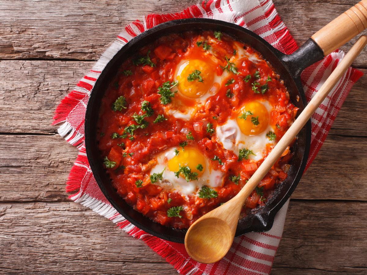 Αυγά μάτια με πλούσια σάλτσα, φέτα και πιπεριά. Ένα πιάτο που μπορείς να απολαύσεις ως πρωινό ή και κυρίως.