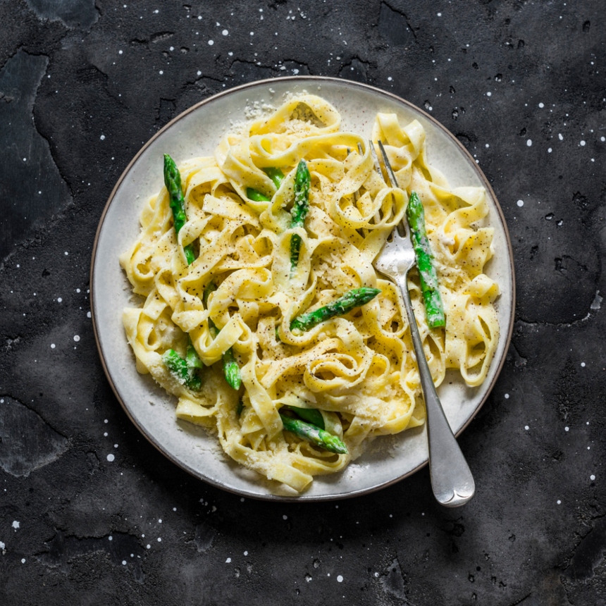 - Ανακατεύεις στην κατσαρόλα με τα ζυμαρικά, τα ντοματίνια κομμένα στη μέση, τα σπαράγγια και τη σάλτσα πέστο.