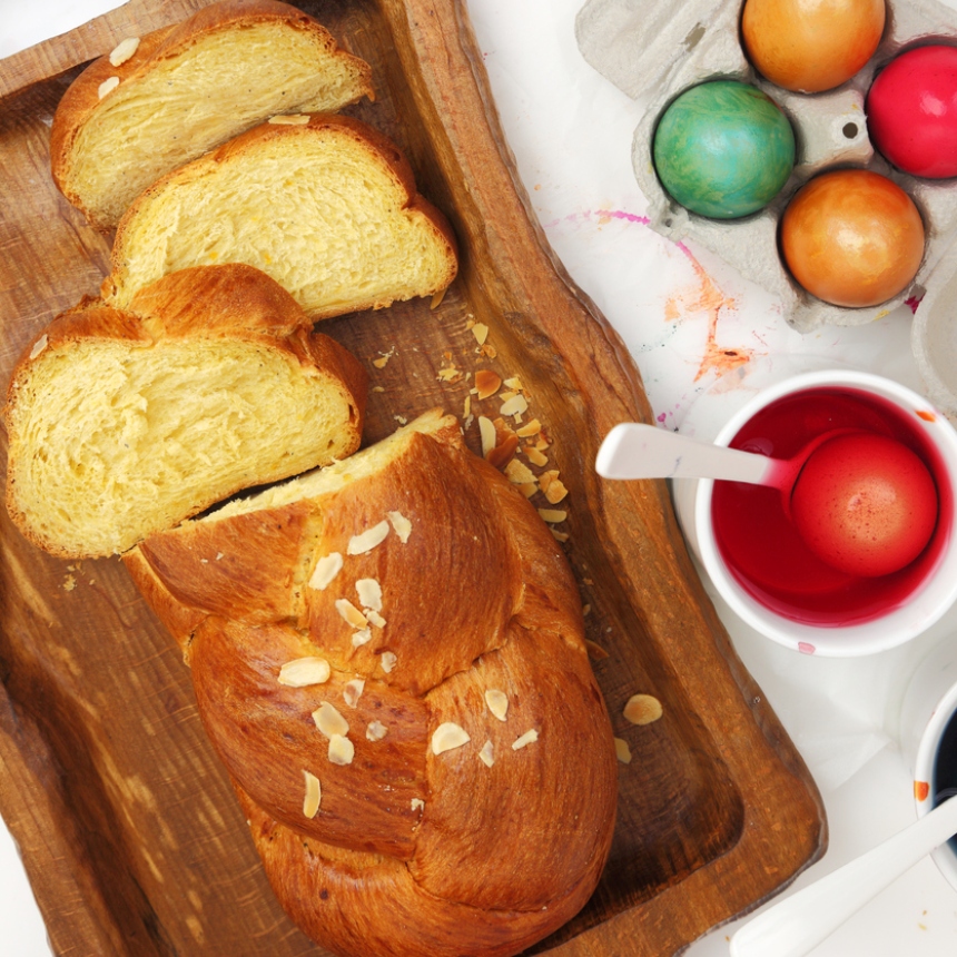 - Σε ένα μικρό μπολ, αναμειγνύεις το αυγό που σου έχει απομείνει με μία κουταλιά νερό και αλείφεις τα τσουρέκια απαλά με ένα πινέλο.