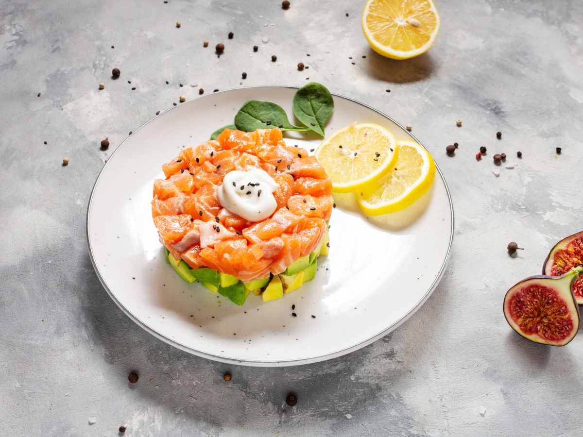 - Βάζεις το τσέρκι σου στη μέση ενός πιάτου και φτιάχνεις πρώτα μία στρώση με το αβοκάντο. Το πιέζεις ελαφρά ώστε να φύγει ο περιττός αέρας. Από πάνω φτιάχνεις μία δεύτερη στρώση με τον σολομό. Απομακρύνεις προσεκτικά το τσέρκι και έτοιμο!