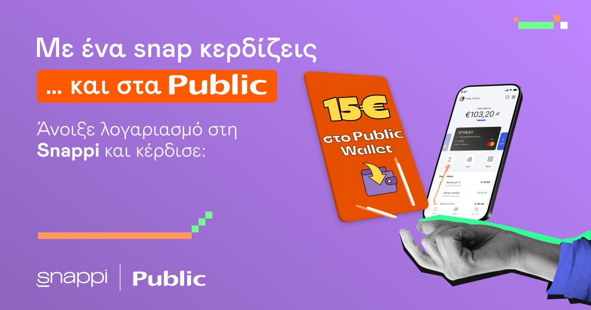 Με λίγα λόγια; Αν έχεις ήδη Public Wallet και χρησιμοποιείς συχνά την εφαρμογή, η Snappi γίνεται ο πιο γρήγορος τρόπος να προσθέσεις extra αξία στις επόμενες αγορές σου. Κι αν όχι, ίσως αυτή είναι η πιο καλή αφορμή για να μπεις στο οικοσύστημα Public με έναν πραγματικά έξυπνο τρόπο. Ξεκινώντας με 15€ δώρο!
